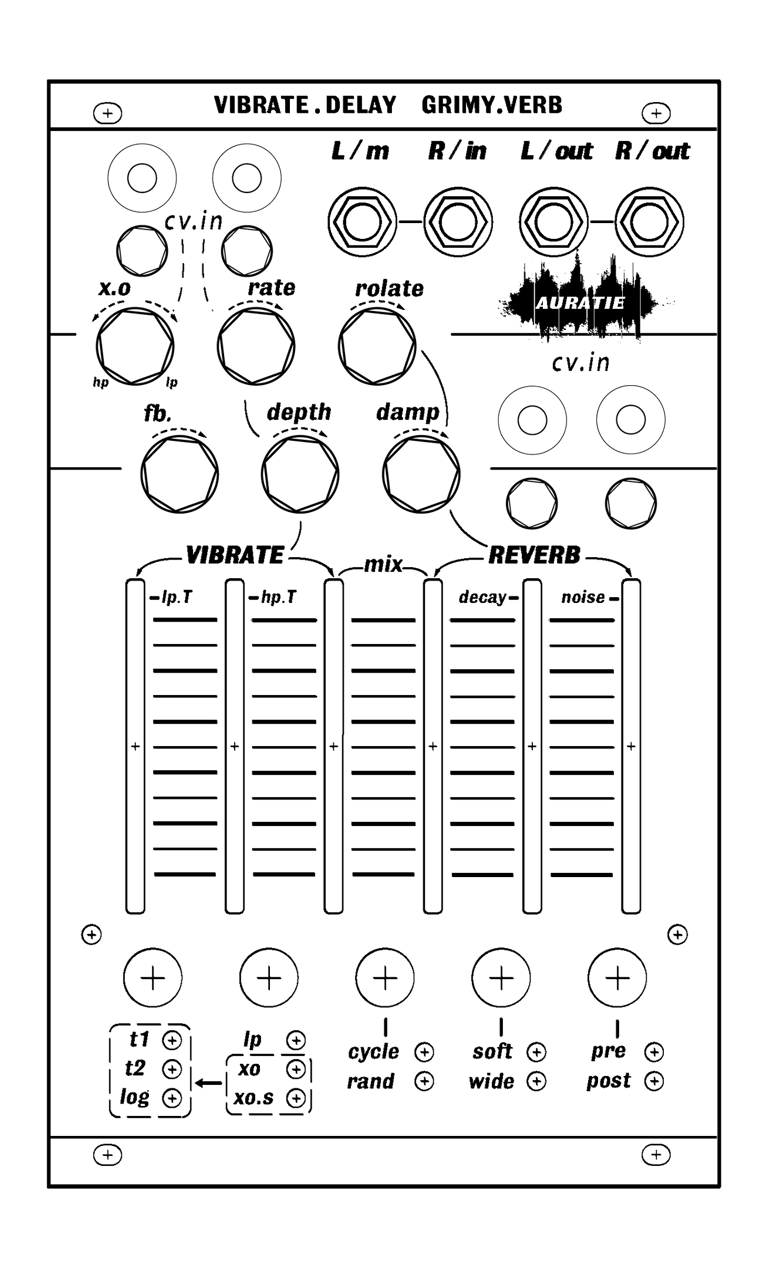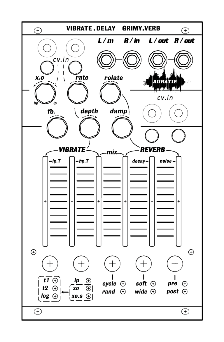 AURATIE aims to explore the extension of single tones into the stereo realm. It transforms simple sounds into expansive and reshaped experiences, making it particularly effective for designing drone soundscapes. The interaction between vibrate and delay creates unique feedback with different delays and frequency changes across the left and right channels. The reverb’s gritty design, combined with the vibrate interaction, allows for intriguing experimentation, enabling users to switch the positions of the two parts for further exploration.